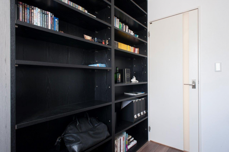 リビングには大きなホームシアターを完備。間接照明のため、光が邪魔をすることなく、ゆっくりと映画を楽しむことができます。また、壁一面が窓になっており、日中は自然光があたたかく差し込みます。エレガントなシャンデリアが輝くウォークインクローゼットは、たくさん収納できるのはもちろん、広々とした設計になっていることから服を選んでその場で着替えることが可能です。窓より長く仕立てるブレイクスタイルのカーテンにより、一層ロマンティックな雰囲気になっています。